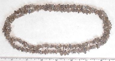 LN504b This is a pretty Labradorite chip bead necklace. These beads have a good polish and average 5 to 6 mm in size. This strand is 35" in length. |