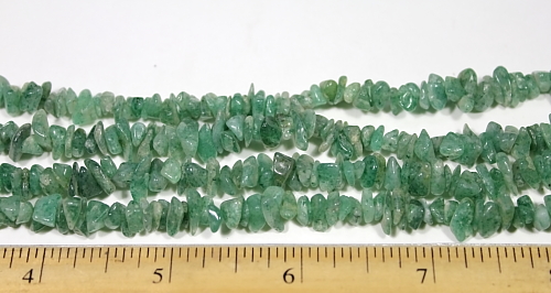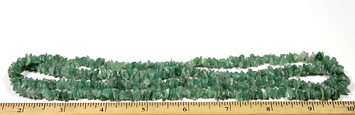 LN101b Here is a medium to dark Green Aventurine chip bead necklace. These beads are nicely shaped, well polished and average 5 to 6 mm in size. They are nice quality chip beads. This strand is 34" in length. Note: Only (2) available |