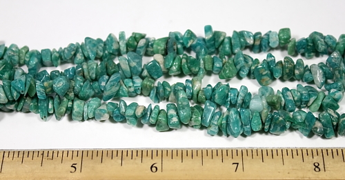 LN102c This is a strand Amazonite chip beads. These beads are approximately 5 to 8 mm in size. This strand is 35" in length. |