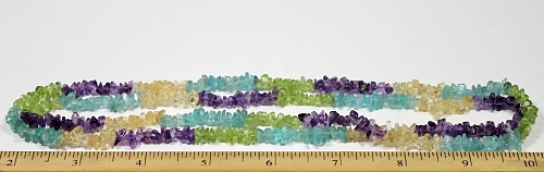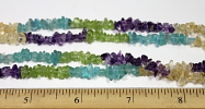 LN108c A pretty strand of Amethyst, Citrine, Apatite, and Peridot chip beads. These beads are nicely shaped, well polished and average 5 to 6 mm in size. They are nice quality chip beads. This strand is 34" in length. |