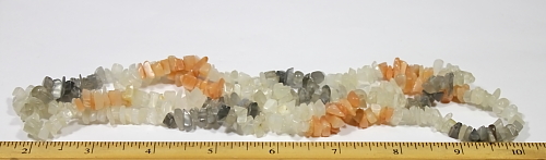 LN203c A pretty Tri-Colored Moonstone chip bead necklace. These beads are nicely shaped, well polished and average 5 to 8 mm in size. They are nice quality chip beads. This strand is 34" in length. |