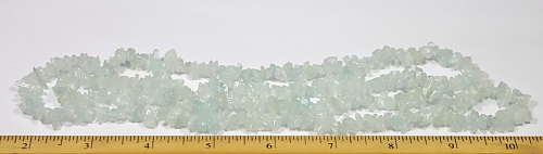 LN205b This is a pretty Aquamarine chip bead necklace. These beads have a good polish and average 5 to 6 mm in size. This strand is 35" in length. |