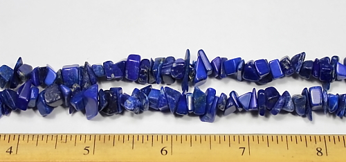 LN400c This is a dark Blue Lapis chip bead necklace made from larger 5 to 7 mm chips. These beads have a good polish. This strand is 35" in length. |