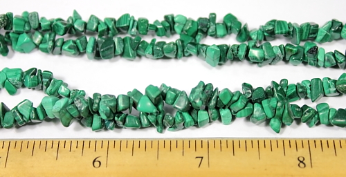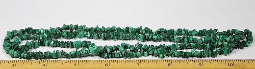 LN401b This is a Malachite chip bead necklace made from smaller 5 to 6 mm chips. These beads have a good polish. This strand is 35" in length. |