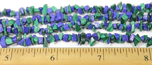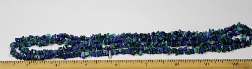 LN402b This is a pretty Lapis - Malachite chip bead necklace. These beads have a good polish and average 5 to 6 mm in size. This strand is 35" in length. Note: Only (2) available |