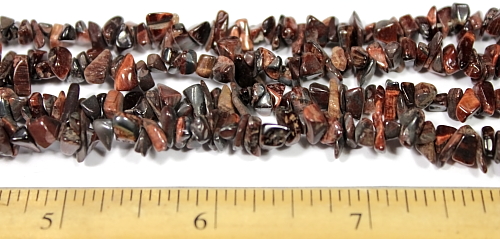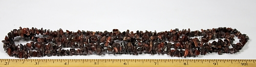 LN403b This is a pretty Red Tiger-Eye chip bead necklace. These beads have a good polish and average 5 to 6 mm in size. This strand is 35" in length. |