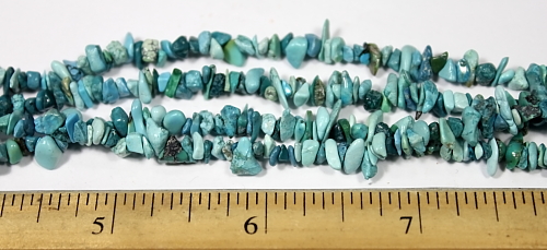 LN404b This is a pretty Blue Turquoise mini chip bead necklace. These beads have a good polish and average 4 to 5 mm in size. This strand is 35" in length. |
